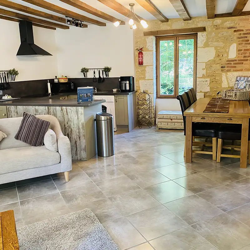 Off the hall, you’ll find a very large open-plan living, dining, and kitchen area. Styled and furnished with love, this luxury gite is equipped to a high standard. Every detail, from the comfortable furniture to the high-end fittings, reflects the owner’s dedication to ensuring your stay is one of complete rest and relaxation.